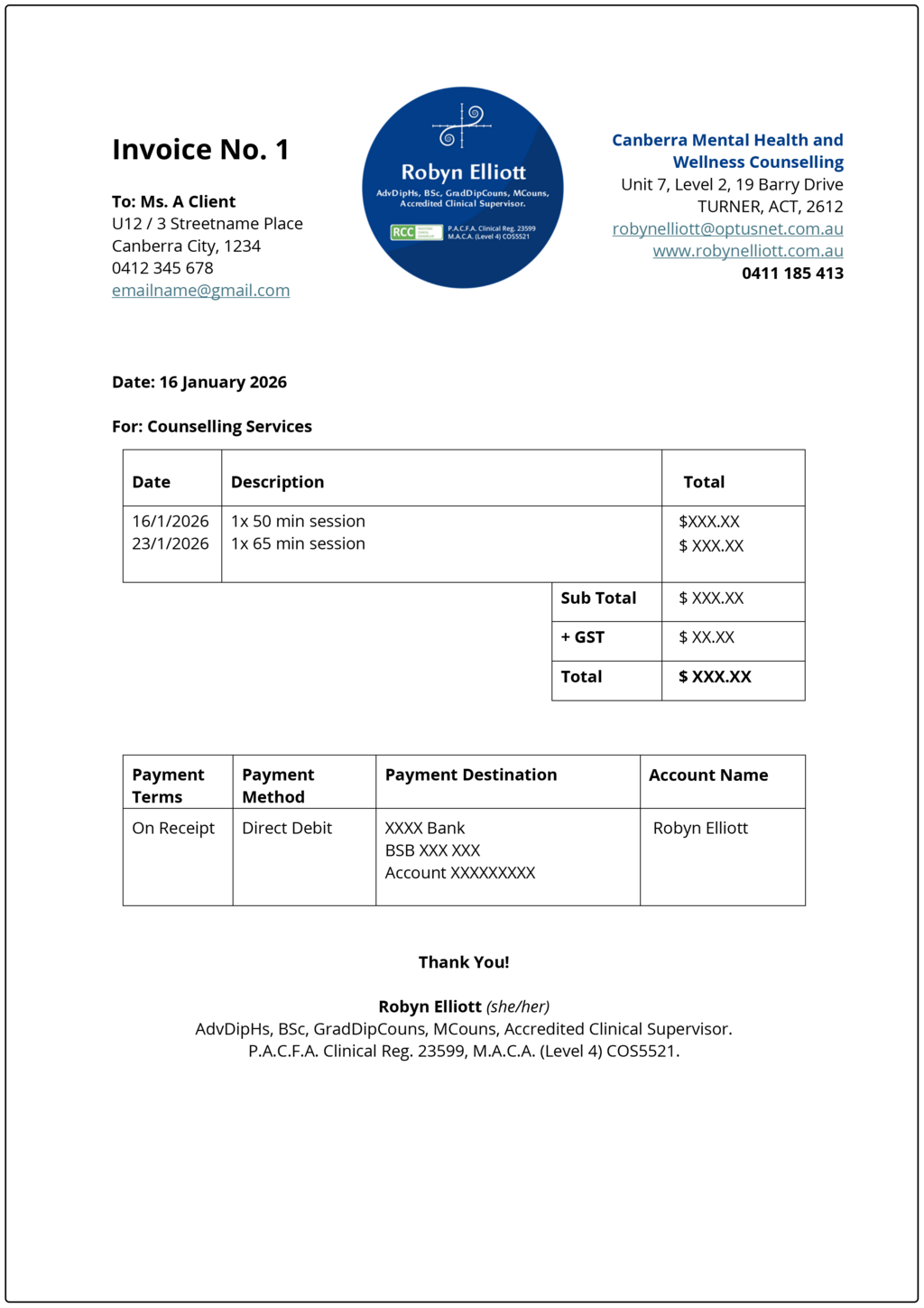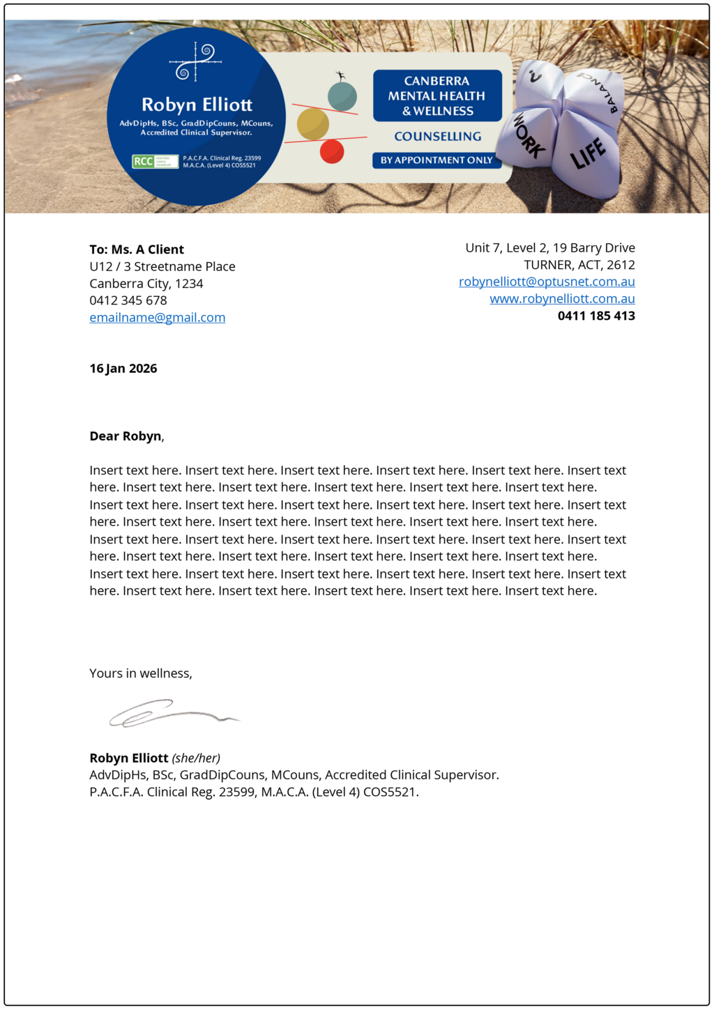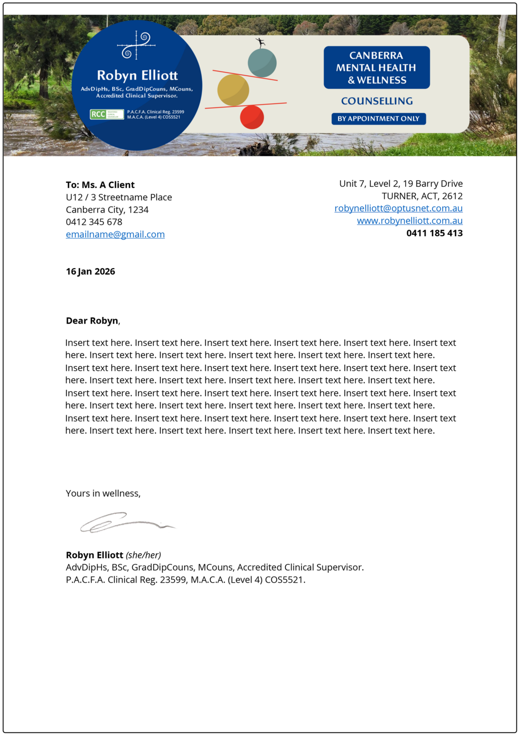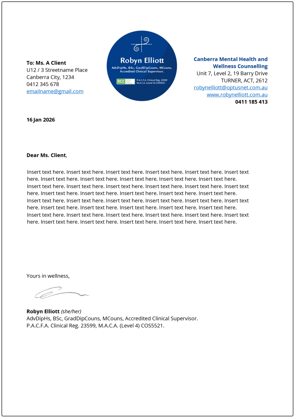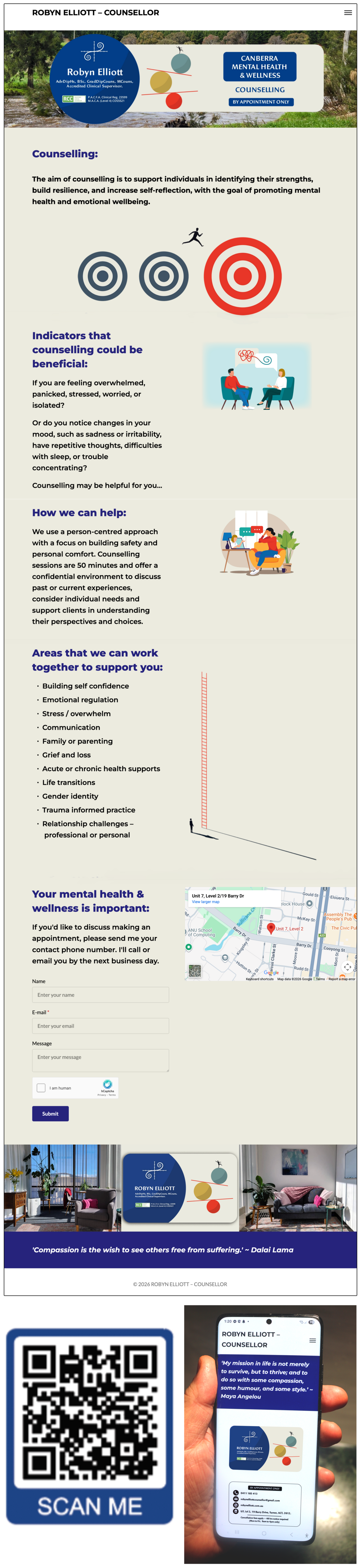 As Robyn's Wellness and Mental Health Counselling business grew, she continued her education to attained higher qualifications – therefore, new credentials needed to be added to her name. In 2025 Robyn moved to new premises and details of her business, qualifications, etc. needed to be changed across all of her business assets.